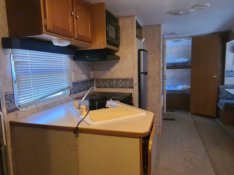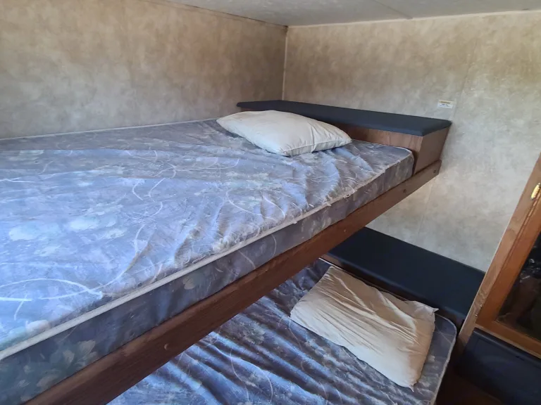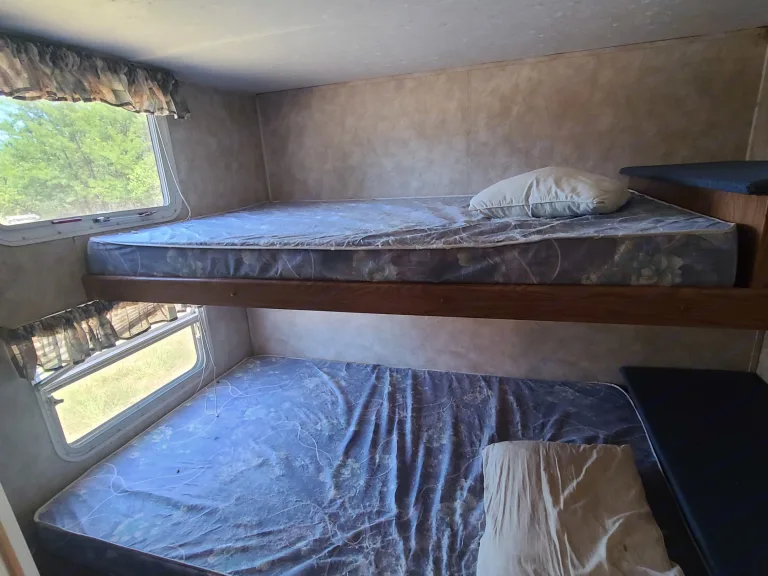 This camper sleeps 8+, AC/heat work great, motorized jack, leveling jacks, and pulls in the highway real nice. I added a pony hit water tank that runs on a dedicated power source for extra hot water and longer showers. Has sewer hookups, as well as electric and water, and and 7 separate storage compartments for traveling longer distances. Queen size bed in the master, bunk beds for the littles, fold out dining table and fold out sofa for for extra sleeping. Over and range are both powered by 2 large propane tanks by the hitch, with a working microwave above as well. Fridge and freezer work great with electric hook up only.Note- awning is broke at the moment and wil be replaced soon.Was ist inbegriffenThis camper is furnished with fresh bed linens, tire blocks for parking, corn hole boards for gaming and standard cooking utensils for grilling out. EmpfehlungenWe love camping and traveling. There are a ton of great state park locations that we love to hit close to home, but have traveled as far as Tennessee. Weitere wichtige DingeI do not mind pets, but smoking is prohibited. This camper is 17 years old and still in great condition for a reason, respect.