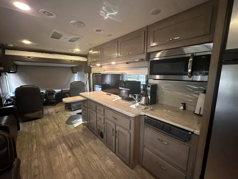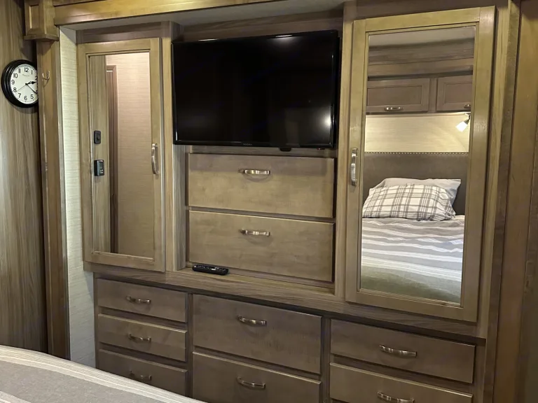 Embark on an unforgettable journey with the ultimate home away from home RV experience! Imagine the freedom of the open road, where adventure awaits around every corner, all while enjoying the comforts of home. This isn't just any RV, it's a haven on wheels, meticulously equipped with everything you might need. From the essentials like pots and pans, plates and silverware, to the luxuries of a coffee maker and air fryer, every detail has been thought of. Along with some board games for family fun.Wake up to the blissful comfort of a queen-size bed then unwind in the plush recliners as you sip your morning coffee, the gentle hum of nature's sounds playing outside the windows. With 2 TV's inside and outside at your disposal, entertainment is never far away, ensuring relaxation and enjoyment for all.This home away from home isn't just about the amenities, it is about the experiences, the memories, the stories that you'll share for a lifetime. It's about not sweating the small stuff because everything's taken care of. It's about the laughter of friends and family, the scenic vistas, the unexpected detours, and the joy of discovery. Was ist inbegriffen• POTS AND PANS