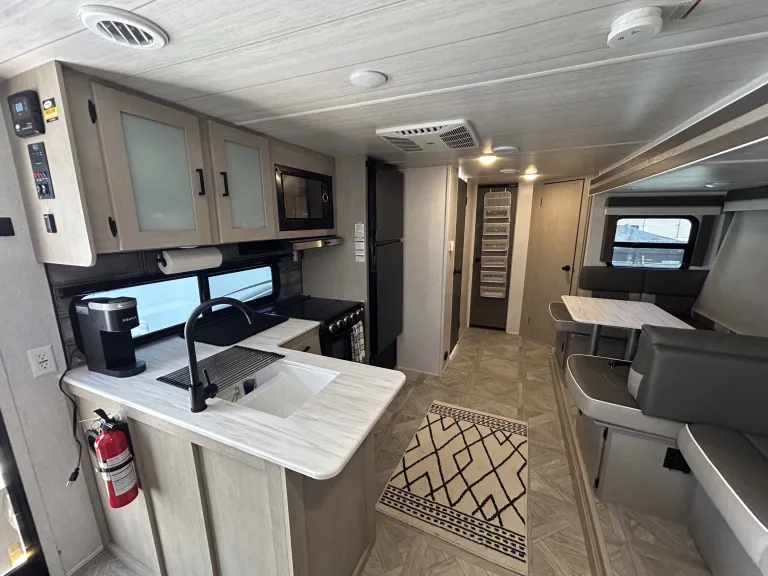 Rent our 2023 Frrv Wildwood X-Lite Platinum for the perfect blend of modern convenience and rugged adventure. With a spacious layout that sleeps up to 10, this travel trailer is ideal for family trips, weekend getaways, or extended vacations. It features a fully equipped kitchen, cozy bunks, a queen bed, and a sleek interior with plenty of storage. Easy to tow and loaded with amenities, it's your hassle-free home away from home—wherever the road takes you.Was ist inbegriffen• Shower essentials