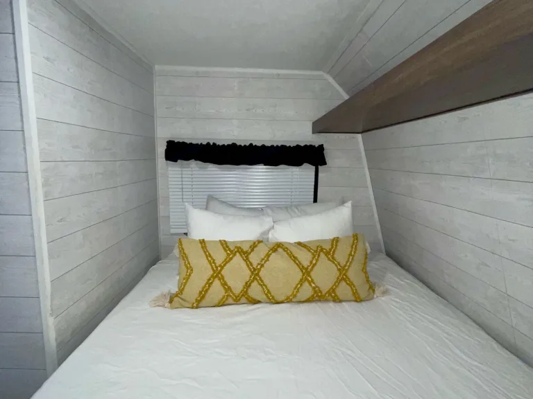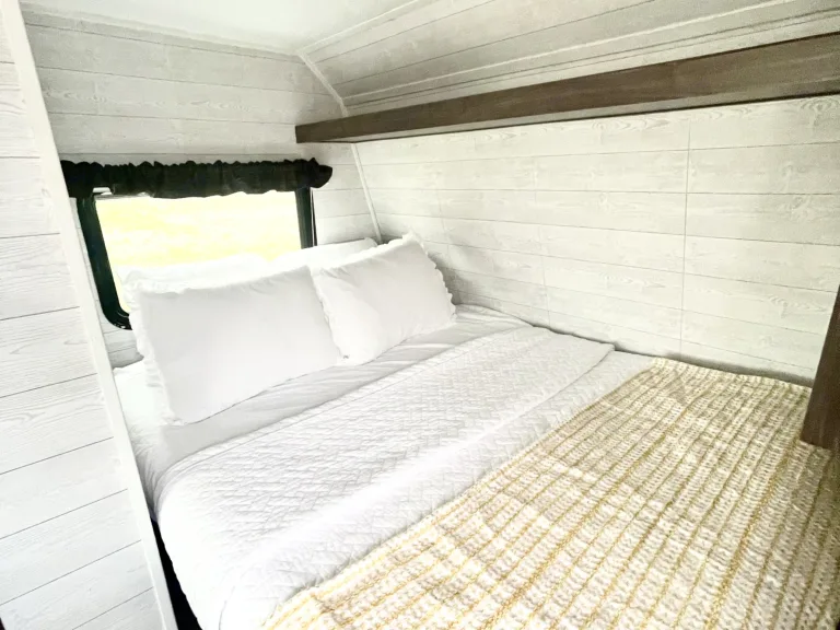 Rent Em’s Hideout Today!Was ist inbegriffenHeavy duty weight equalizer tow hitch, tire pressure monitor, set of 4 microwave safe dinning wear, fresh linens for the queen bed and the full conversion bed, towels, extra blankets, pillows, septic safe toilet paper, Keurig, 4 camping chairs, giant jenga, giant connect four, playing cards such as "What Do You Meme?", paper towels, 1 cooking pot, shampoo, conditioner, body wash, dish soap, step by step instructions on how to use everything, and all the tools you need to hook up the electric, water, and septic systems.