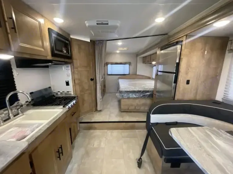 Experience the perfect balance of space and drivability in this Coachmen Leprechaun 230FS. With a full-wall slide-out (an added 65 sq ft of extra inside space compared to other similar RVs without slides approx), this RV opens up to reveal a surprisingly roomy interior - complete with a walk-around queen bed, convertible dinette that seats 5, and sleeping space for up to 6 (one true size 60x80 queen bed, one 57x95 cab-over bunk (queen) bed, and one 44x71 u-dinette bed). Whether traveling with family or just wanting the extra elbow room, you'll love the open feel without the hassle of a bulky rig. As a bonus, you can access the kitchen, bathroom, and fridge even with the slide closed!