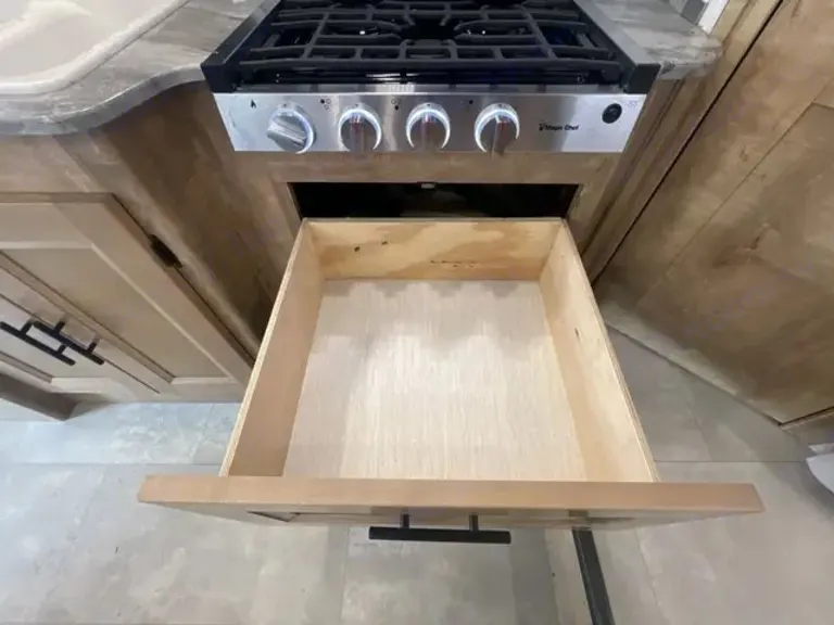 At just 26 feet long, it's easy to drive, simple to park, and fits comfortably in most campgrounds and state parks. The walk-around bed means no more climbing over your partner at night, and the full dry bath and kitchen give you all the comforts of home.