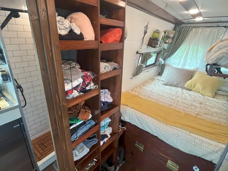 A true craftsman tiny home on a 170", 4x4 wheel base. Designed with comfort, convenience and form in mind, our recently converted turbo charged Mercedes Sprinter 2500 is the perfect platform for your next road adventure.She features a gas stove & water heater, large Isotherm fridge with a small freezer space, ample food, clothing and utility (garage) storage for snowboards, skis, luggage etc. Stay cozy in her short queen sized bed with enough room in the twin sized bunk for either a friend, child or bedding/blanket/soft goods storage and clean off in her large interior shower.A compact A/C unit will keep you cool under the sheets on hot nights and her two Espar diesel heaters are more than enough to keep you toasty on cold ones. Was ist inbegriffen• Kitchen basics
