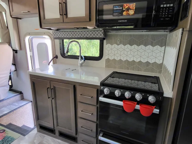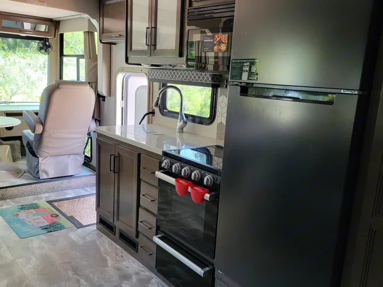 • Fully Equipped Kitchen: Includes a glass-covered oven, microwave, residential-size refrigerator, and plenty of storage for meals and snacks.