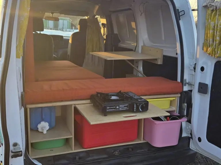 *Location de 3 jours minimumBanquette pour deux à l’intérieur qui se transforme en lit double 54 poucesGlacièreNécessaire pour cuisiner et couverts pour deux (chaudron, poêlon, assiettes, bols, ustensiles)Contenant d’eau de 10LNécessaire pour la vaisselle (savon, brosse à laver, guenilles, linge à vaisselle, balais, liquide désinfectant)Poêle à un rond (bouteille de butane incluse)Drap contourAssistance routièreBeaucoup de fun