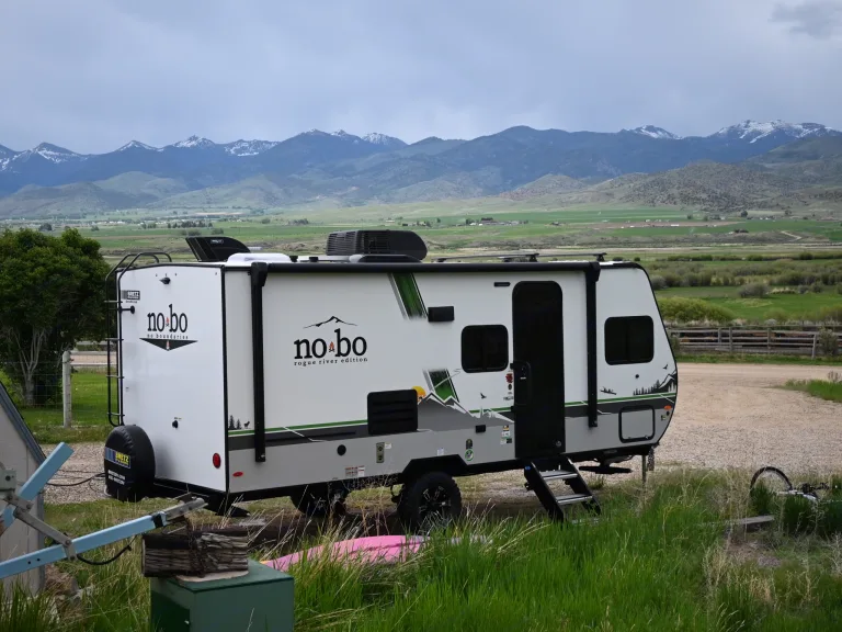Nobo is a spacious travel trailer available for towing only with full size trucks. This unit comes with a queen bed and 2 bunk beds (kids love the bunk beds). The dinette area can also turn into a bed.Pets are totally welcome! :)This unit has solar, so if you’re dry camping without hookups, it’ll be able to provide you with the basic power amenities easily(water pump, lights, slide out and awning power). The solar charge will typically last through the night no problem, and then it recharges quickly the next day.Clean linens included.Please message me with any questions.***Generator not available and will not be included.***Was ist inbegriffenFresh linens, pillows, blankets: included. Please let me know what you need.Weitere wichtige DingeFull size trucks only please. This unit isn’t very heavy but a full size truck is still strongly recommended for extra safety and peace of mind.