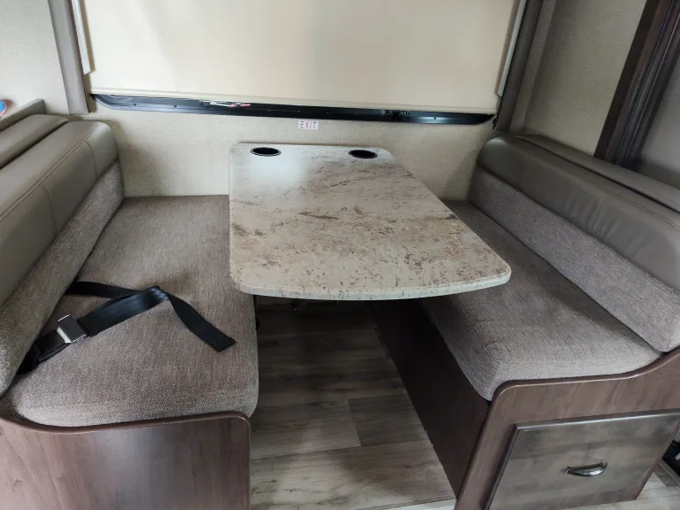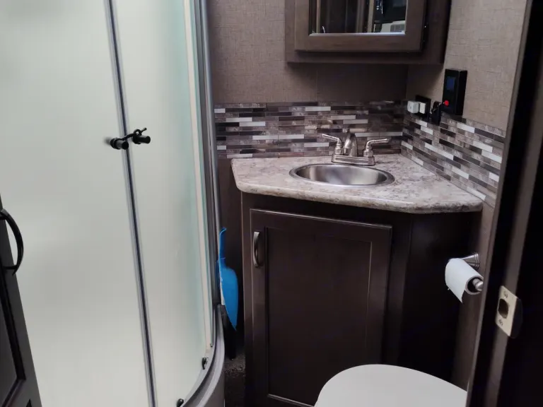 2018 Four Winds 31W. Has 7 total seatbelts. Sleeps 6 comfortably and 8 if a couple people double up. Has all the comforts of home. Stove, microwave, residential size fridge and freezer, double sink, indoor and outdoor shower, heat, A/C etc. Onboard generator for outpost camping. Comes furnished with pretty much everything you'd need such as cookware and dishes, towels, cleaning supplies, linens, for no extra charge! Basic cooking essentials such as seasonings and oil. Also comes with a tabletop Blackstone griddle, hose and two one-pound propane tanks for griddle.Was ist inbegriffen•Basic Seasonings/oil for cooking