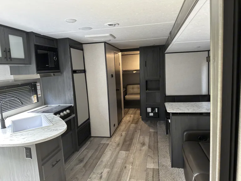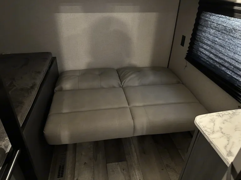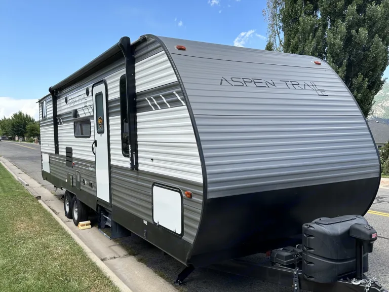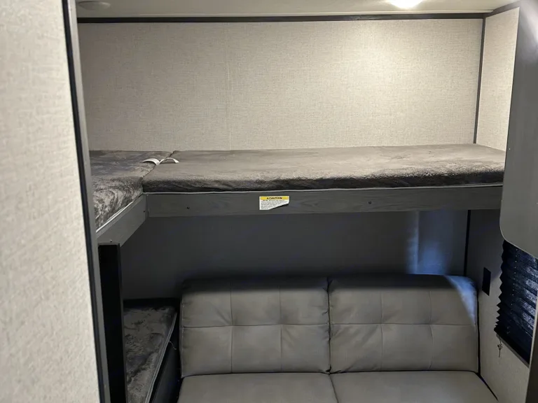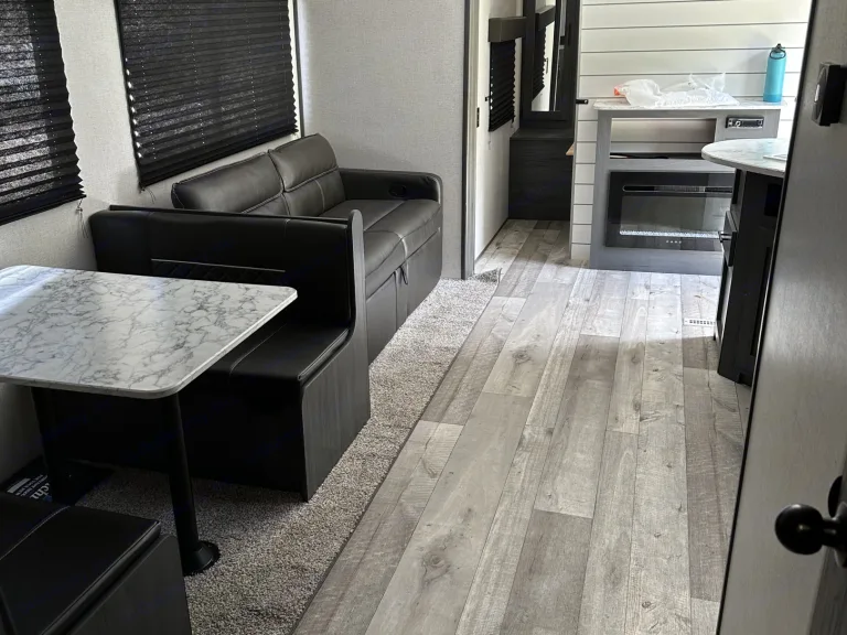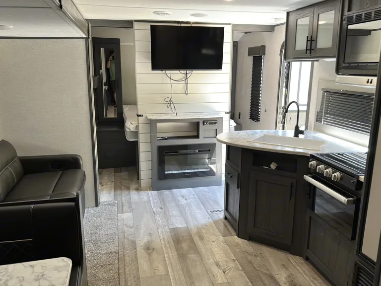 Escape into nature without sacrificing comfort in this 2021 Dutchmen Aspen Trail LE—your perfect home away from home! Designed to sleep up to 9 people, this spacious travel trailer is ideal for family adventures or group getaways.Step inside and enjoy all the comforts of home, including a full kitchen equipped with a sink, microwave, stove top, refrigerator, pots/pans, cooking utensils, coffee maker, plates and eating utensils and kitchen table—perfect for cooking up delicious meals after a day of exploring. The queen master bedroom offers a cozy retreat, while the bunk room with its own door ensures privacy and extra space for the kids or guests.No need to rough it—this trailer features a full bathroom with a shower, so you can freshen up after a long day outdoors. For those chilly nights, the fireplace adds extra warmth and ambiance in addition to full heater and AC, making your stay even more inviting.Entertainment is covered with internal and external speakers, letting you enjoy your favorite tunes whether you're inside relaxing or outside under the full awning, which provides shade and shelter for outdoor lounging. The large TV inside, with connections for phones and laptops, allows for more entertainment when you are stuck indoors, or go non-tech with card and board games, or a fun game of corn hole at the campsite.Whether you're heading to the mountains, the beach, or a scenic campground, this Aspen Trail LE is ready to make your adventure unforgettable. Book now and start making memories!Was ist inbegriffen• Paper plates