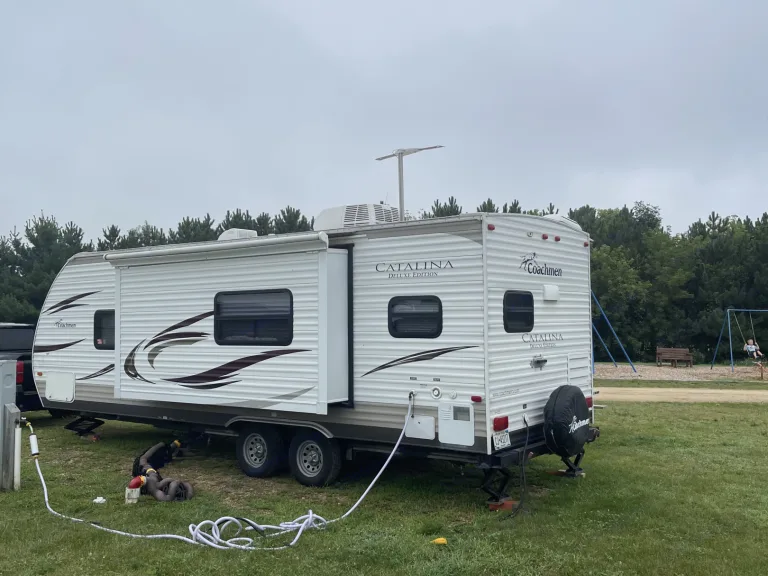 Hit the road in style with our Catalina Deluxe Fifth Wheel Travel Trailer – the perfect home away from home! This RV is in amazing condition, fully equipped, and ready for your next adventure.Enjoy a comfortable and spacious interior, with everything working just as it should. The water heats up quickly, and the propane tank makes cooking a breeze. A satellite-connected TV gives you access to channels anywhere, and it can also connect to campsite cable hookups if available.It’s easy to tow, and we’re happy to show you how to hook it up to your truck if needed. Whether you’re a seasoned traveler or trying RV life for the first time, this trailer offers a stress-free, cozy experience on the road.Book now and start your adventure!