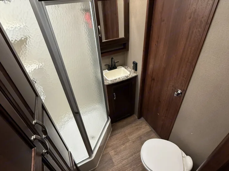 Full Bathroom – Complete with a large shower, vanity sink, and toilet.