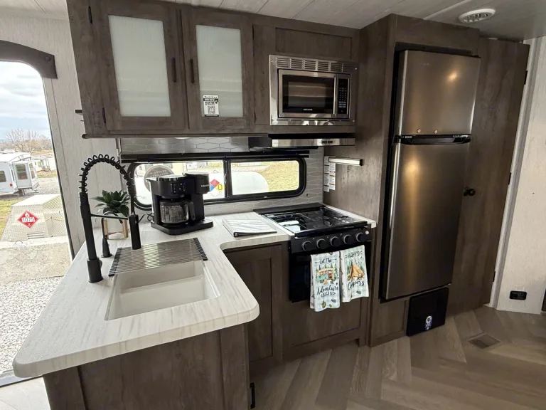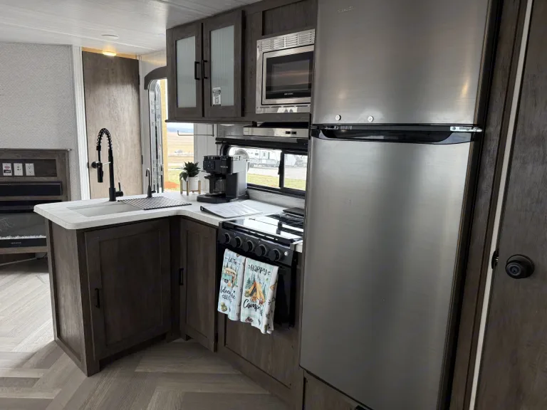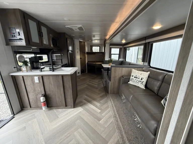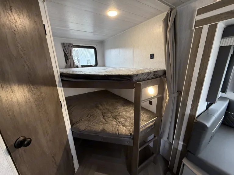 Got a small furry friend? Bring them along too! This travel trailer is currently our most pet friendly option. It even comes with a doggy door, so no fur babies left behind.