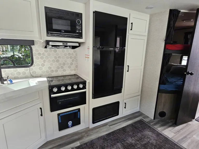 No worries here. We will set up everything ready to use for you. No need to worry about black water, grey water, or fresh water tanks and flushing. Electric and propane will also be set up and ready for you.