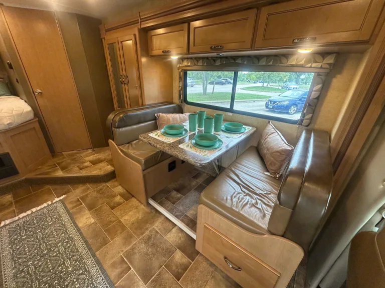 • Power cords & hoses for easy hookupFull tank of gas & propane to start your journeyEmpfehlungenWe recommend a cruise to Starved Rock State Park for breathtaking hikes and waterfalls or a take the scenic drive up to Door County, WI for charming small towns and lake views. Michigan Sleeping Bear Dunes has some epic beachs. For a closer getaway, you can explore Illinois Beach State Park or spend a weekend camping at Rock Cut State Park. Wherever you go, the journey is just as fun as the destination, especially in this RV!Weitere wichtige DingeNo smoking inside the RV, please and thank you! We pride ourselves on keeping it fresh, clean, and comfortable for every guest. Well behaved pets are welcome for a fee (just let us know ahead of time), and remember, this RV is our home and we put a lot of effort into it for every guest to enjoy so please return the RV in the same condition you received it.