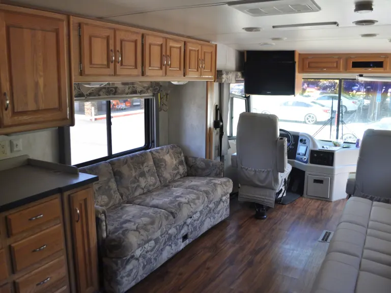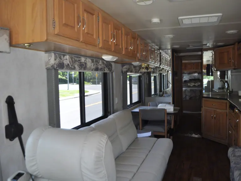 This is a large diesel pusher motorhome. We can deliver/pick-up if needed. Two air conditioners, generator & plenty of storage. This unit has 2 full-sized jackknife sofa beds plus one master bedroom for total sleeping for 6. One super slide out makes this unit roomy and enjoyable.Was ist inbegriffenWhat's included
