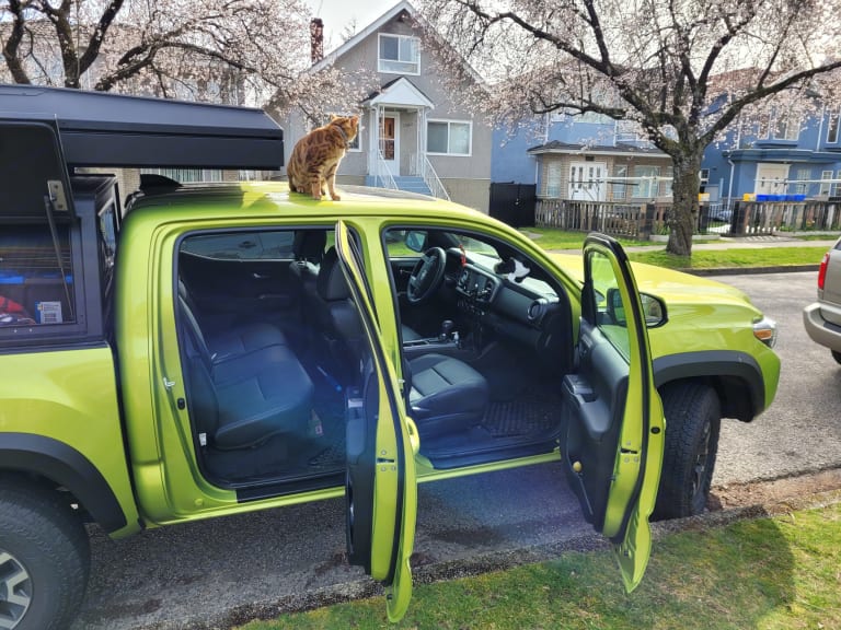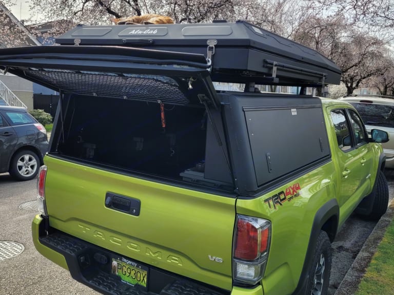 Are you looking for a reliable and fully-equipped adventure vehicle for your next outdoor excursion? Look no further than our 2023 Toyota Tacoma off-road rental, complete with an Alu-Cab roof tent and all camping equipment you'll need for an unforgettable camping experience.Our Tacoma rental is the perfect vehicle for those who crave off-road adventures and appreciate the convenience of a well-equipped camping setup. The Alu-Cab roof tent provides a comfortable sleeping space that can accommodate up to two people, and the included camping gear has everything you need to prepare meals and enjoy your time in nature.Our Toyota Tacoma off-road rental is 4x4 capable and a powerful engine, making it easy to navigate challenging terrain and reach your favourite secluded camping spots. You'll have peace of mind knowing that our vehicles are regularly serviced and maintained to ensure they're always in top condition.We offer flexible rental periods, with both short and long-term rentals available to meet your needs.Was ist inbegriffenI provide all the camping equipment that you would need for two people, for a small fee. Some people like to bring their own stuff and they are welcome to do so. All my equipment is top of the line and made for camping. Right has solar and no need for generator. Can power the fridge and laptop for 15 days.[URL removed]EmpfehlungenThis rig will allow you to get to many places a van or small RV cannot. This setup allow you to get closer to remote places, it is light and 4x4 . You will have all you need, fridge, storage for valuables and power for off grid adventures.. You can sleep on the head of the trail before your hike, just get up and close the tent. The sleeping bags and pillow fit just fine. Weitere wichtige DingePlease no smoking in the truck or tent. And no food or drinks in the tent.