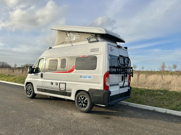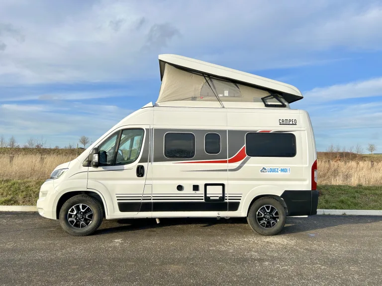 Ultra compact et convivial, le CampÉO C540 est un fourgon aménagé qui combine à la perfection maniabilité, confort et fonctionnalités pratiques. Grâce à ses équipements et son design bien pensés, il est idéal tant pour voyager en famille que pour la grande aventure ou les petites escapades.Il est un véritable multitalents ! D’abord grâce à ses 4 couchages ultra douillets (un lit double transversal, et un lit double dans le toit relevable), mais également grâce à un salon-kitchenette bien pensé : deux plaques de cuisson, un réfrigérateur (avec compartiment congélateur), un évier, et surtout une table avec plateau amovible qui vous permettra de partager vos repas à 4 en toute intimité, dans le confort d’un intérieur aux couleurs douces et chaudes.L’optimisation du CampÉO C540 se révèle également dans la salle de bain : douche (eau chaude), lavabo et WC chimiques, tout au même endroit !Parmi les équipements inclus dans votre voyage vous trouverez : un store extérieur, de la vaisselle pour 4 personnes, une table et 2 tabourets extérieurs, le produit et 2 rouleaux de papier toilettes adaptés aux WC chimiques, un tuyau d’eau, une rallonge de 15m et son adaptateur, bouteille de gaz.Services inclus : 200km par jour réservé - Assurance tous-risques 24h/7j - 1 conducteur.Plus de caractéristiques techniques :