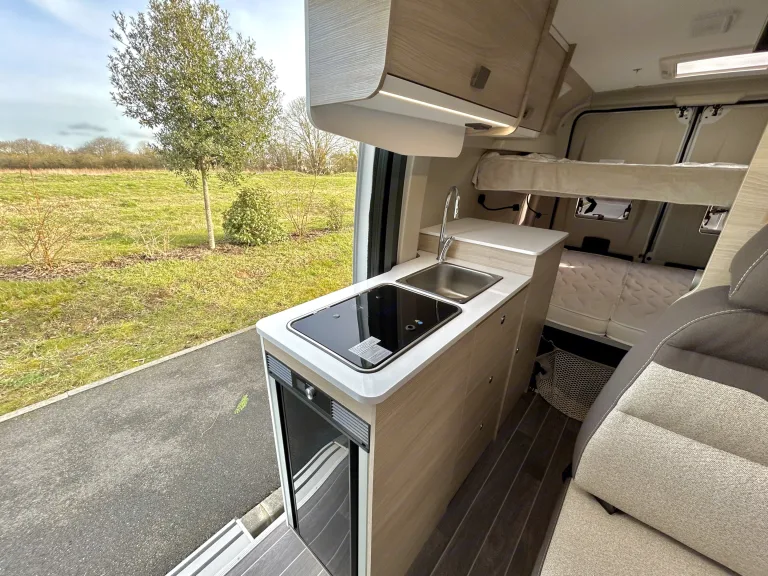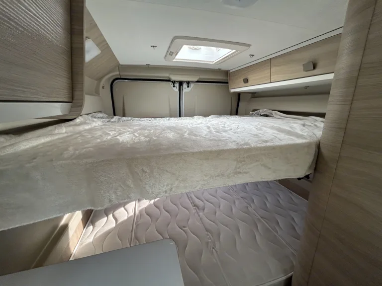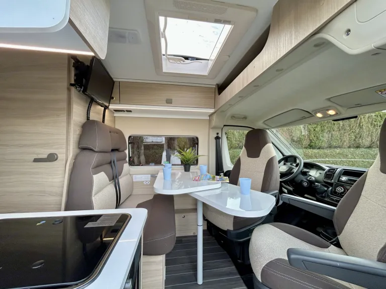 Conçu pour ceux qui souhaitent s’évader du quotidien sans renoncer au confort, le CI Kyros 5 est le compagnon idéal pour des escapades prolongées, en famille comme entre amis. Compact, polyvalent et ingénieusement aménagé, il coche toutes les cases pour vivre la route en toute liberté.Avec ses 4 couchages répartis en deux lits doubles superposés, le CI Kyros 5 s’impose comme l’un des modèles les plus compacts et fonctionnels de sa catégorie. Chaque recoin est pensé pour optimiser l’espace et faciliter votre séjour.Sa kitchenette entièrement équipée — deux plaques de cuisson, un évier, et un grand réfrigérateur avec compartiment congélateur — vous permettra de stocker et préparer aisément les repas de toute votre petite troupe.Le CI Kyros 5 dispose également d’une salle de bain complète avec douche à eau chaude, lavabo et WC chimiques, pour garantir confort et intimité, où que vous soyez.Dans l’espace salon, la banquette, la table avec rallonge et les deux sièges cabine pivotants vous permettront de partager un repas jusqu’à 4 personnes.