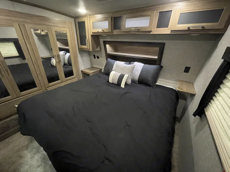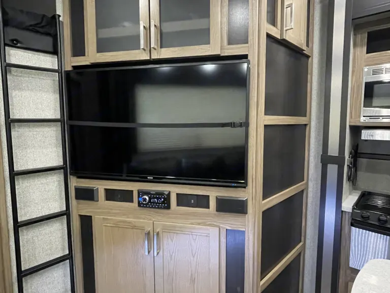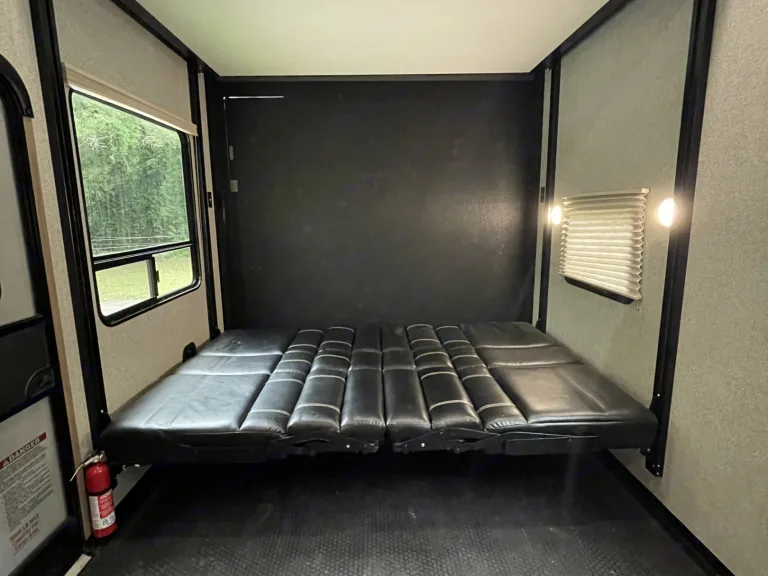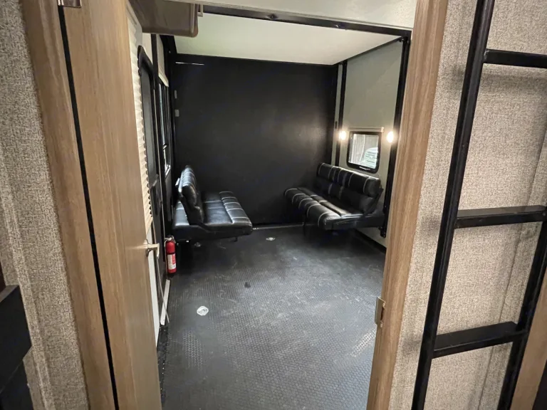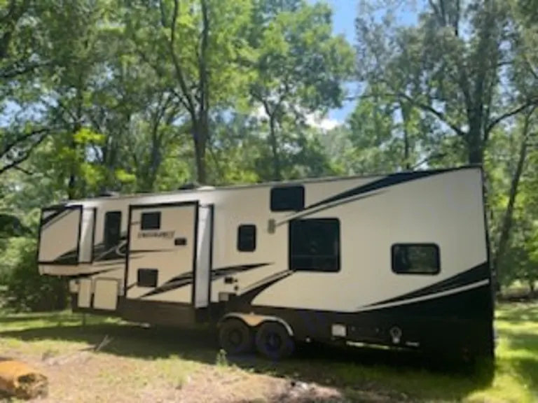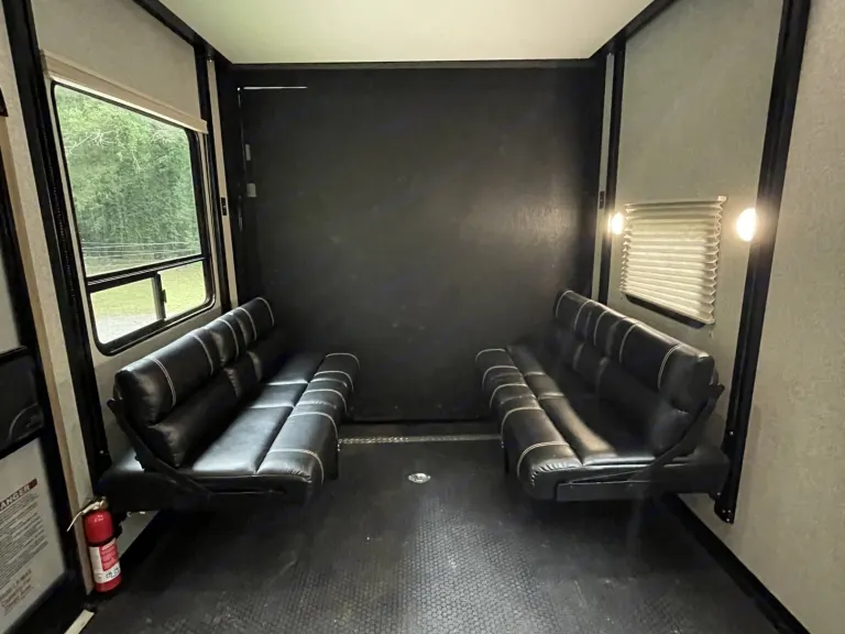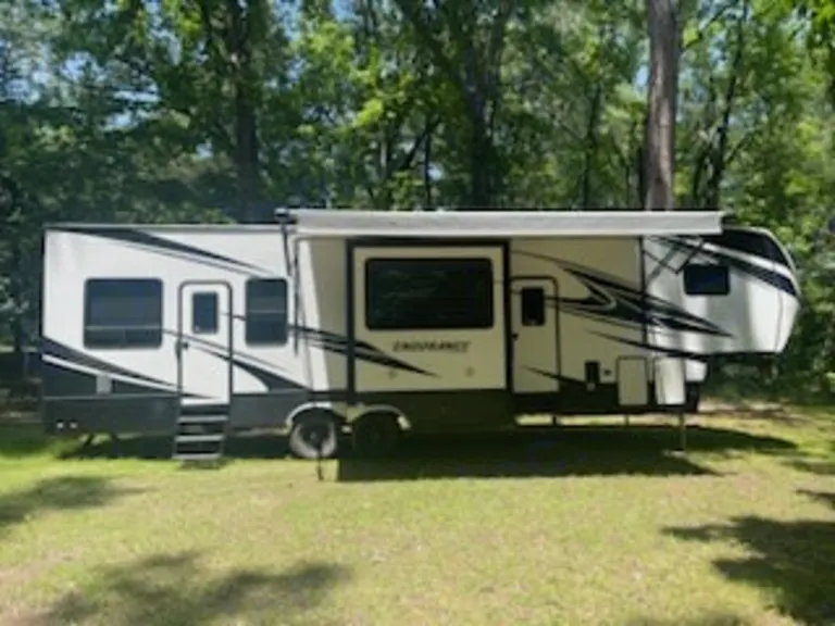 Welcome to Unbound Adventures, where we challenge you to roam and rediscover the outdoors! To help you meet this mission, we are offering this beautiful Dutchmen Endurance Toy Hauler for rent! With sleeping for up to 8, it has plenty of room for your family or friends to share in your own unbound adventure. Equipped with many of the amenities you would find at home, you will not miss the comforts you desire while also making memories in the great outdoors.As you step inside, you will find an open kitchen/living area equipped with an RV-sized fridge/freezer, gas range, vent hood, microwave, and an island with a sink. Across from the kitchen is your 3-seat reclining/massaging couch and a flat-screen TV. Also in the living/kitchen area is a loft bed.Moving up the stairs to the right of the kitchen is the master bedroom and bath. The bedroom has a queen bed and plenty of storage for your adventure gear. The full bath features a shower, toilet, and sink with storage above.Back through the living area, you will find the "garage". This is a very versatile space as it has in-floor tie-downs for your toys (motorcycles, dirt bikes, four-wheelers, side by side, golf cart, bikes, scooters, and more). When you get to your destination and unload your toys, the garage can convert to a second bedroom or lounge area. The bottom-tracked "bunk" can be lowered to make two couches with a table between for dining or late-night card games (many a game of spades or uno has been played at this table). When it's time for bed, the upper "bunk" can be lowered for a sleeping total of 4 in the garage. It also has its own half bath and exterior door for added convenience.Outside, you will find an awning to keep the midday sun at bay, as well as outdoor speakers to play your favorite tunes.