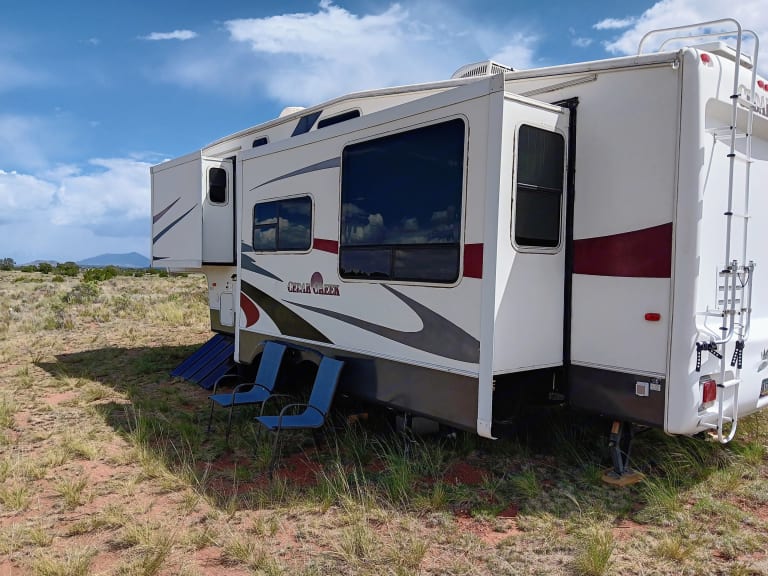 Great RV Camp Site Close To Grand Canyon 30 mi. Very Private Location A Few Minute Drive From Highway 180. The Camper Is Equipped With 1 Sleeping Quarter & Can Accommodate Up To 3 People. The Camper Is In Good Condition And Features Many Amenities To Make Your Stay Comfortable. The Property Is Completely Off Grid And Has Great Views Of The Surrounding Area. The Summer Temps Are 20 Plus Degrees Cooler Then Phoenix & Las Vegas. Great Stargazing In This Area!Was ist inbegriffen33 Ft Camper With 2 Slide Outs. Feature Brand New Leather Power Reclining Sofa With Power Head Rest & New Queen Memory Foam Mattress. There Is A User Manual Onsite.The Camper Has All Basic Off Grid Features. Lights, Rest Room, Shower, Charging Station, Cell Phone & Device Internet Service Is Available In This Area. There Is A Store & Gas Station A Few Mins Away, Please Bring Ice. 50 Quart Cooler Onsite.Weitere wichtige DingeThe RV Is Stationary. Please Do Not Attempt To Move.